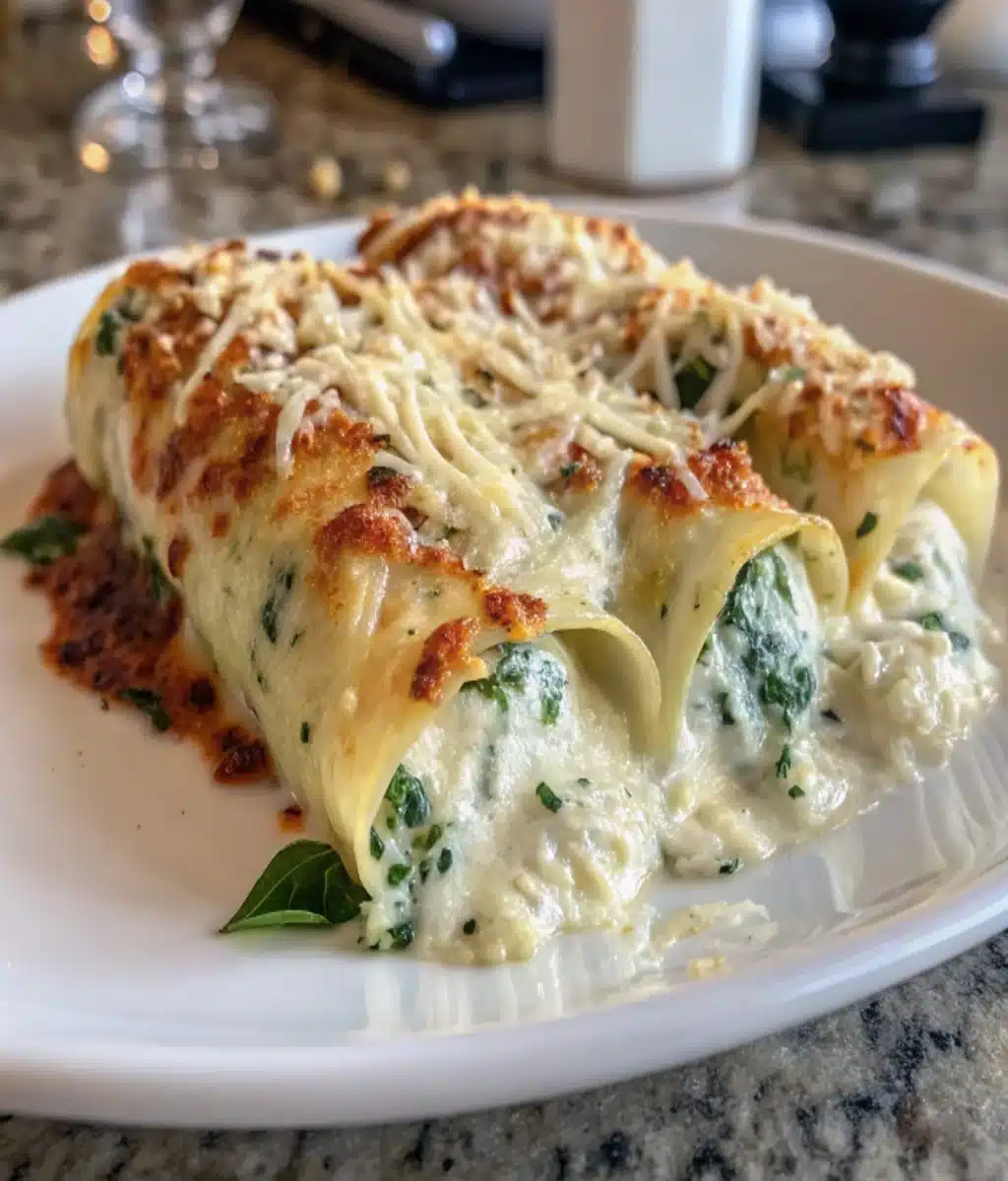 10. Rest and Serve: Let the Cheesy Spinach Manicotti rest for 5-10 minutes before serving.