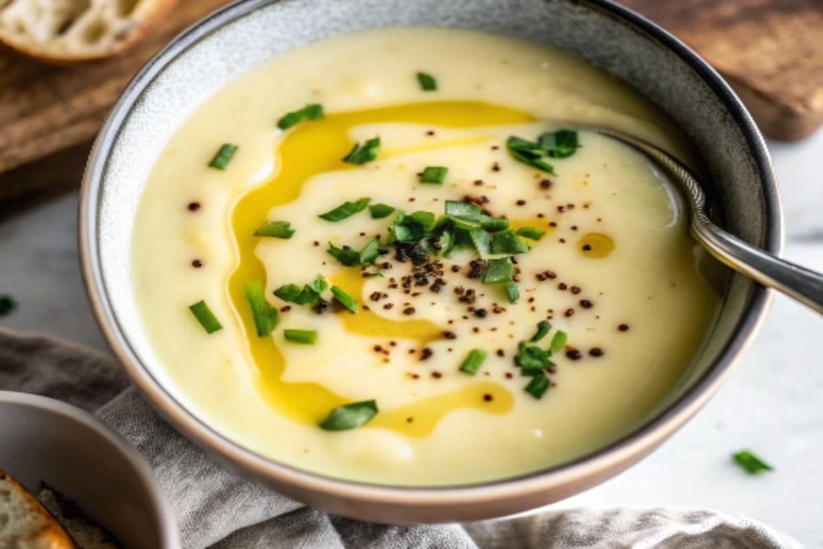 Creamy Potato Leek Soup is a warm, comforting classic made with tender potatoes and sweet leeks in a velvety broth.