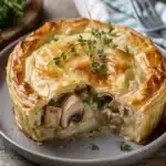 This French Chicken and Mushroom Pie combines tender chicken, earthy mushrooms, and a rich, creamy sauce, all encased in flaky puff pastry for a satisfying and comforting dish.