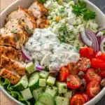 • Completely Customizable: Don’t love cucumbers? Swap them for bell peppers. Want a different grain? Use quinoa or farro. You can easily adjust the components to suit your taste, making this the most versatile Greek chicken rice bowl you’ll ever try.
