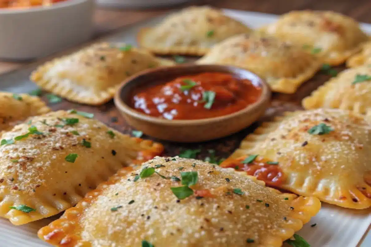 * Remove the cooked ravioli bites from the skillet and drain any excess oil on a paper towel-lined plate.
