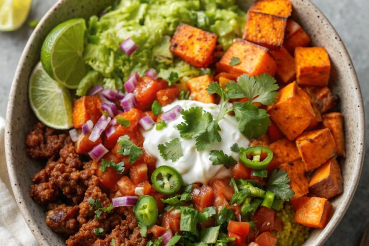 Sweet Potato Taco Bowls are a deliciously healthy and filling dinner idea perfect for busy weeknights or meal prepping. These taco protein bowls combine roasted sweet potatoes with seasoned ground meat, fresh toppings, and a creamy cilantro lime sauce for a meal that’s full of fiber, protein, and vibrant flavors. If you’re looking for nutritious dinner ideas with sweet potato that satisfy your cravings and support healthy dining, this recipe is a winner.