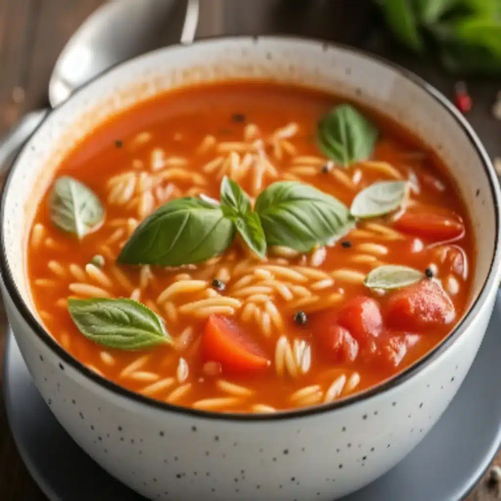 This Tomato Orzo Soup is a heartwarming dish that combines sweet ripe tomatoes and delicate orzo pasta in a creamy, savory broth, perfect for busy families seeking warmth and comfort.