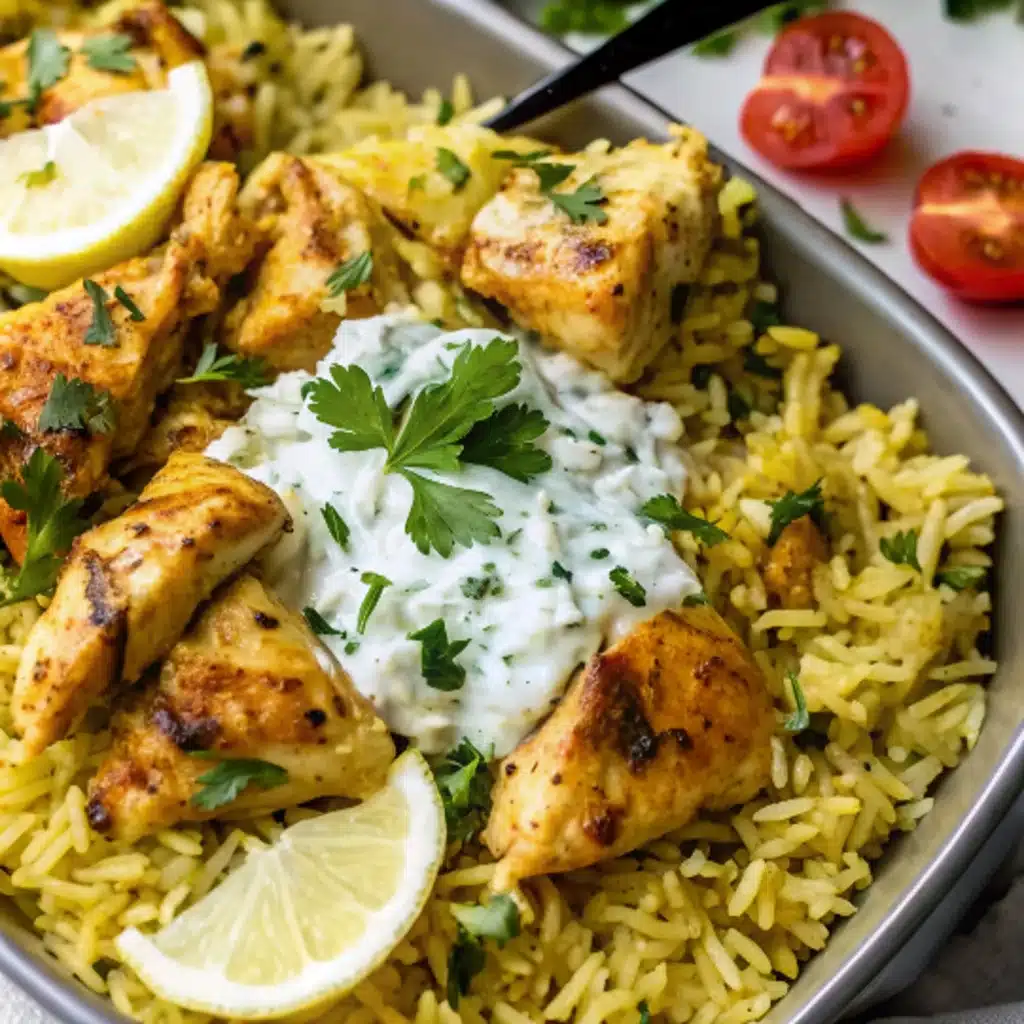 This Tzatziki Chicken Rice Bake is a comforting one-pan meal featuring tender chicken, savory rice, and a cool, creamy tzatziki sauce, making it perfect for busy weeknights.